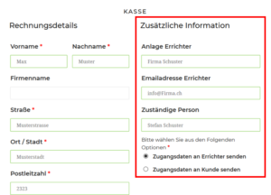 Fügen Sie ihre Gewünschten Produkte zum Warenkorb hinzu. Beim Abschluss der Bestellung können Sie die Zusätzlichen Felder ausfüllen um Ihre Kontaktdaten zu hinterlassen. Weiter wählen Sie, ob Sie als Errichter die Zugangsdaten benötigen oder der Kunde. Wenn Sie die Bestellung bestätigt haben, erhällt ihr Kunde den Lieferschein und die Rechnung für das Produkt. Sobald die Zahlung bei uns eingetroffen ist, erhalten Sie oder der Kunde die Zugangsinformationen und die Anleitung.